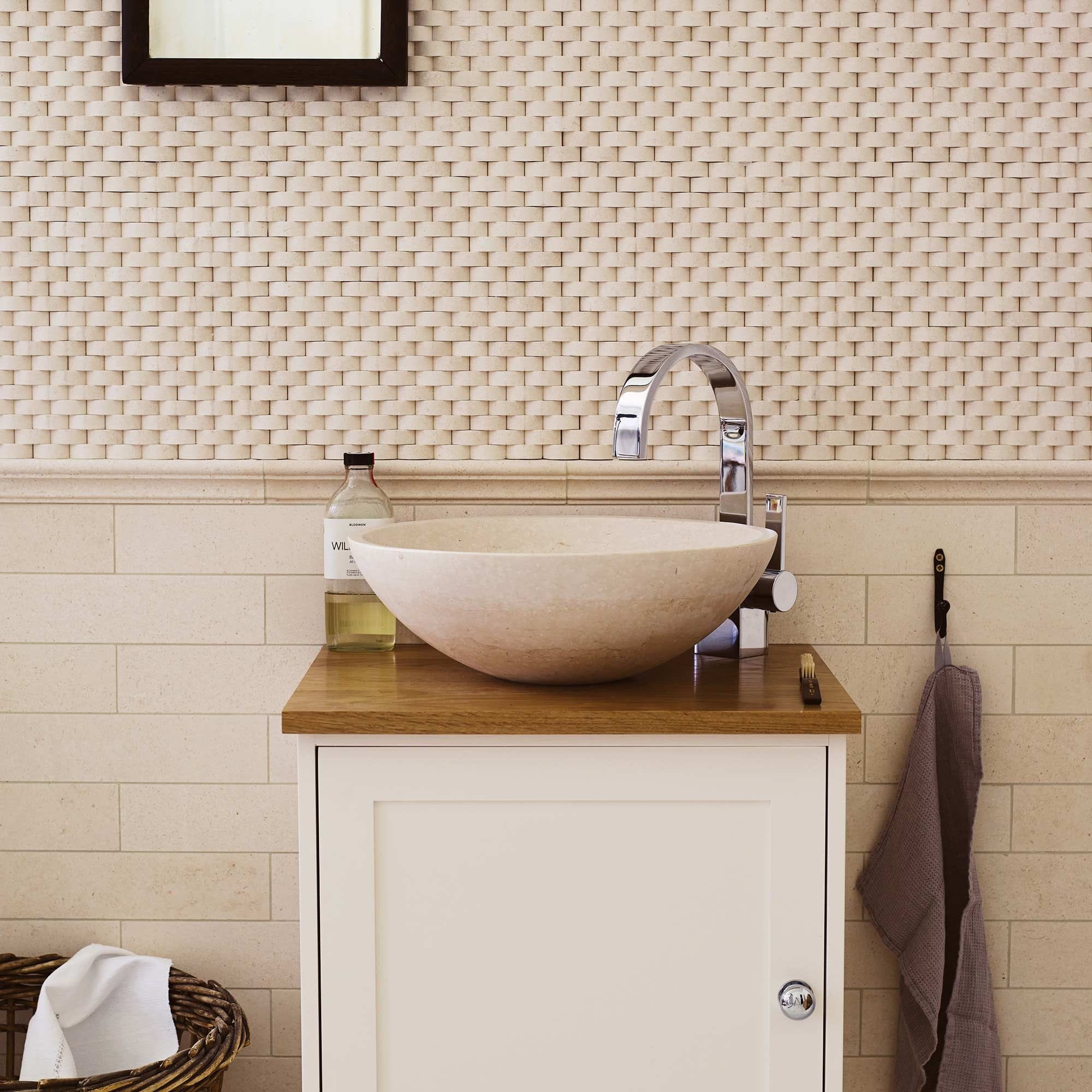 Aegina håndvask er en flot og elegant naturstens vask i Crema Marfil marmor.