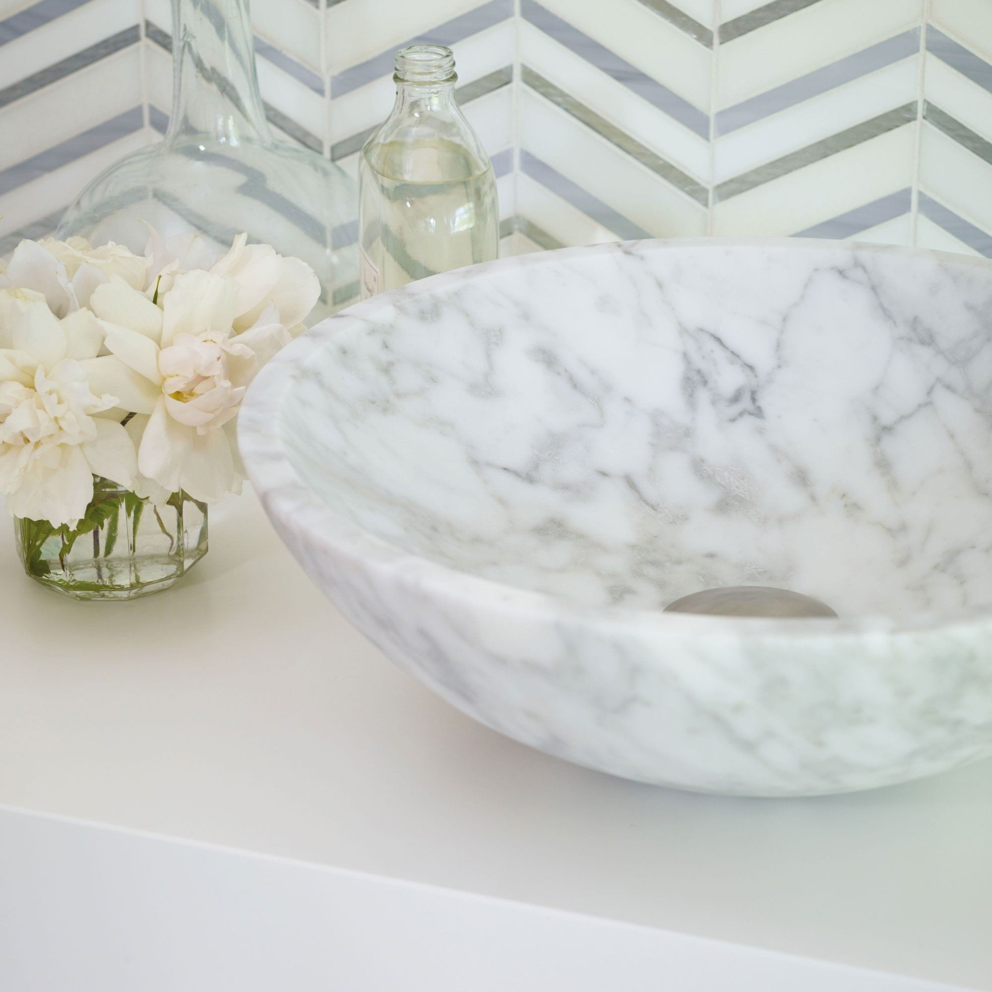 Alimia håndvask er en flot og elegant naturstens vask i Carrara marmor.