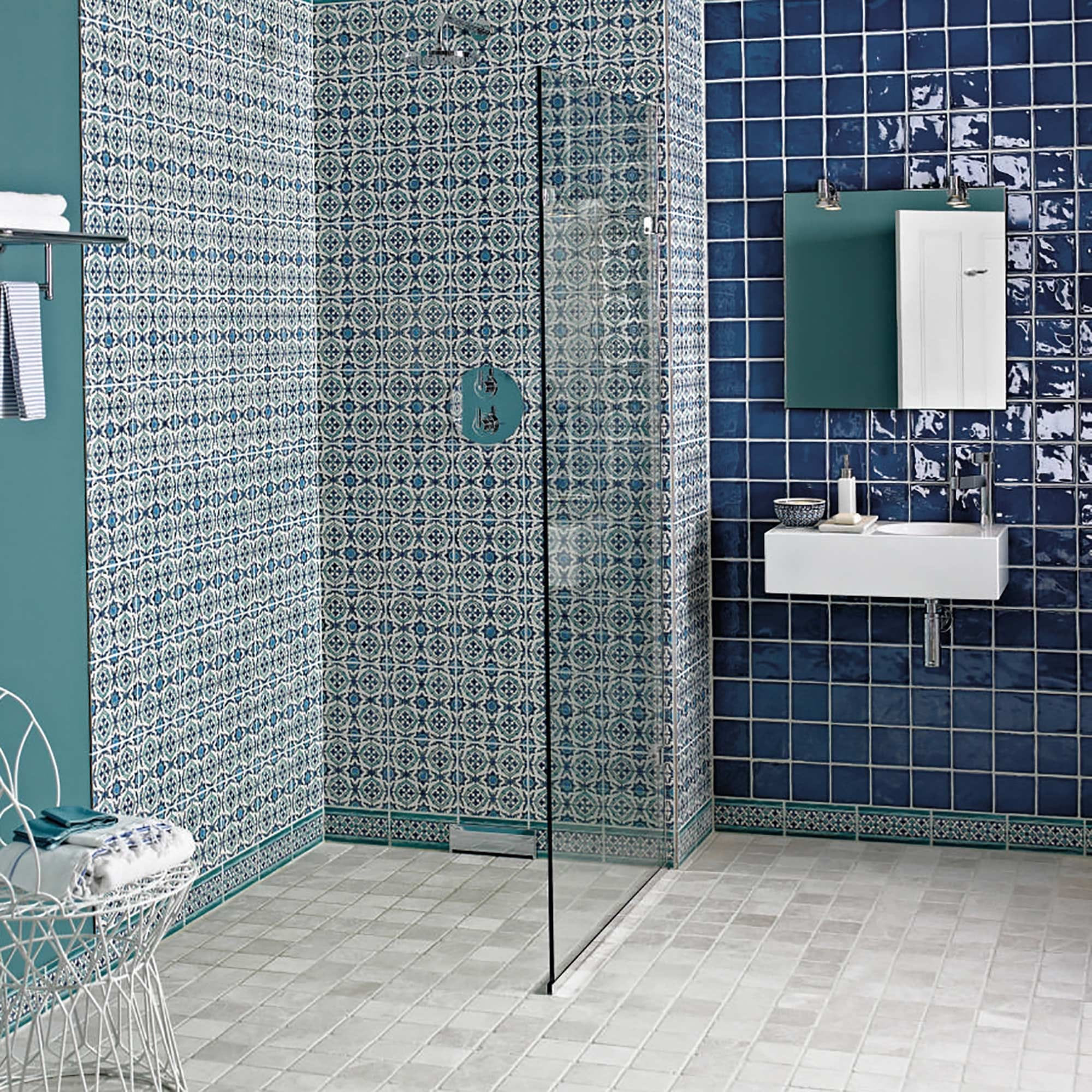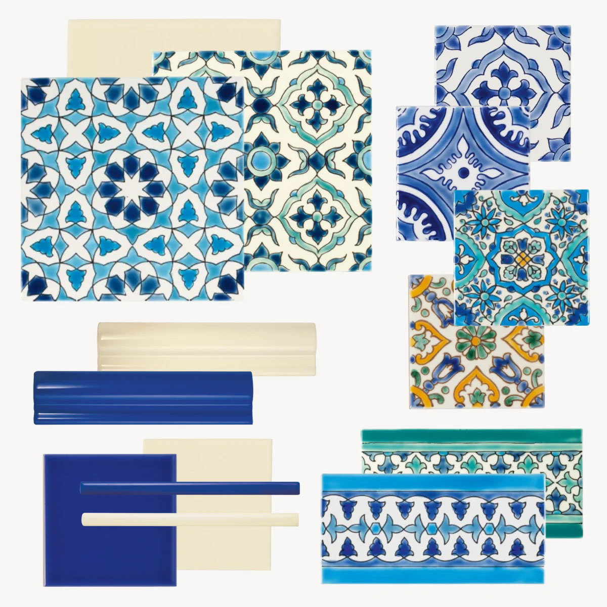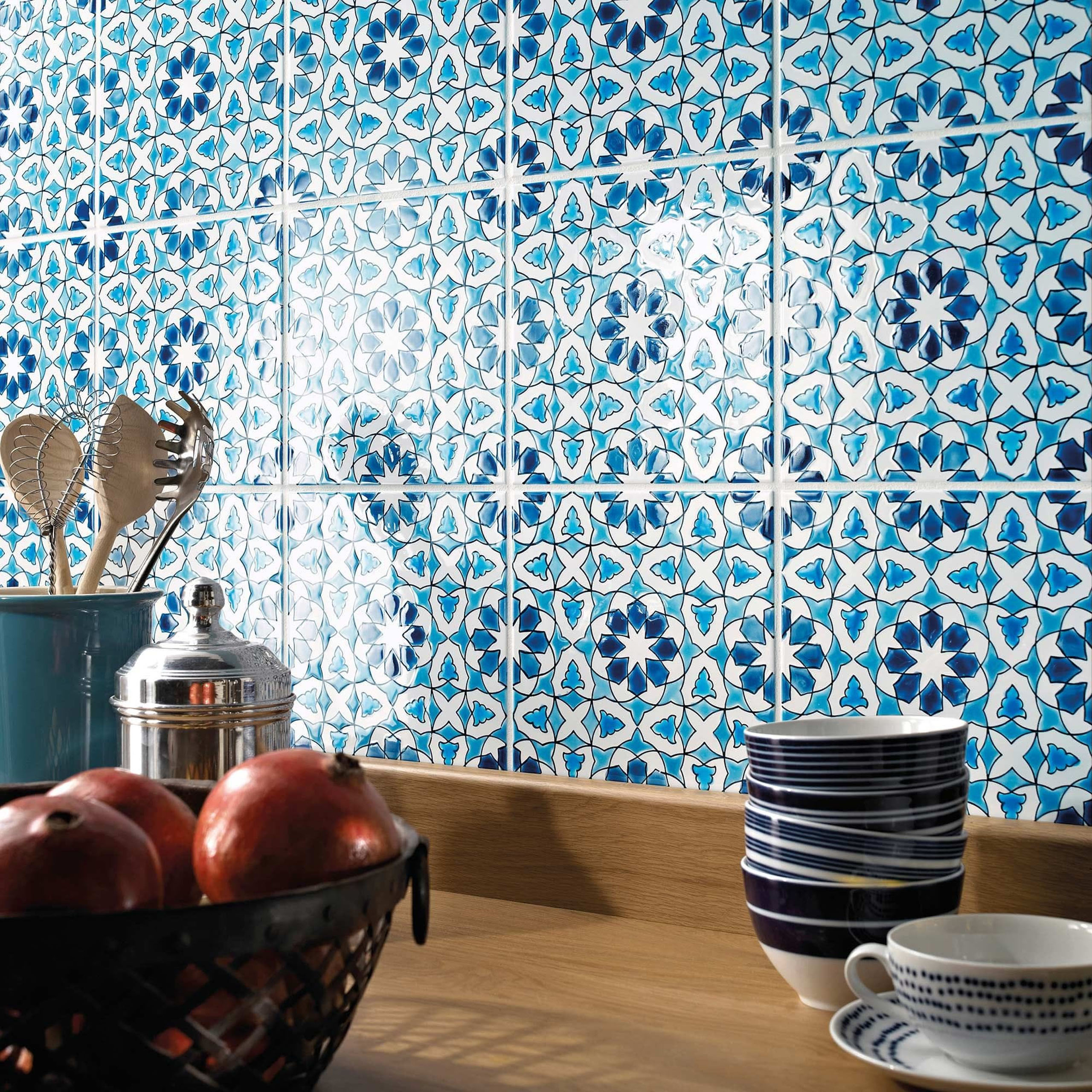 Med sin blanke glasur, stærke farver og helt lige kanter byder Andalucia på en moderne fortolkning af de traditionelle mauriske mønstre, som var fremherskende i den nordlige middelhavsregion. Fliserne kan også kombineres i farver og mønstre, så der kan skabes en helt individuel løsning. Håndmalet i Tunesien.