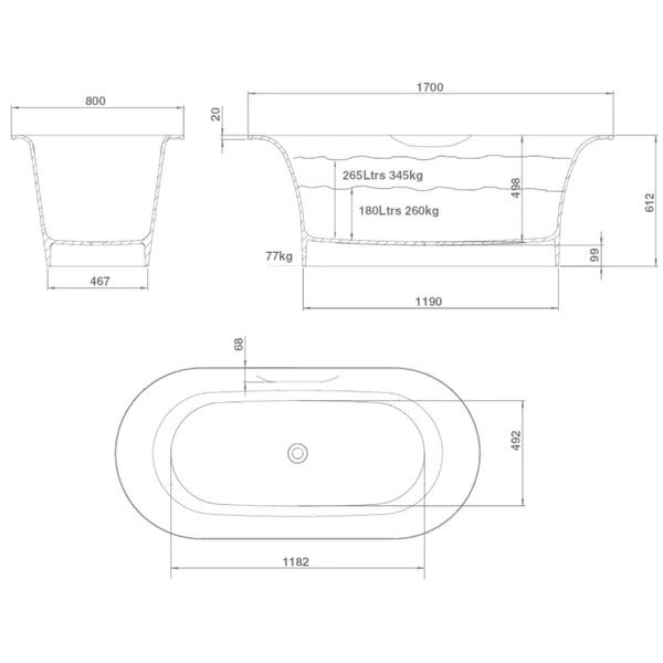• Leveres uden huller til armatur, men disse kan bores efterfølgende i siden på badekarret