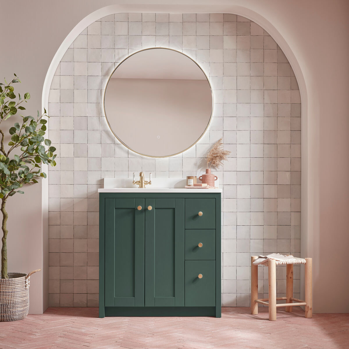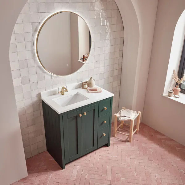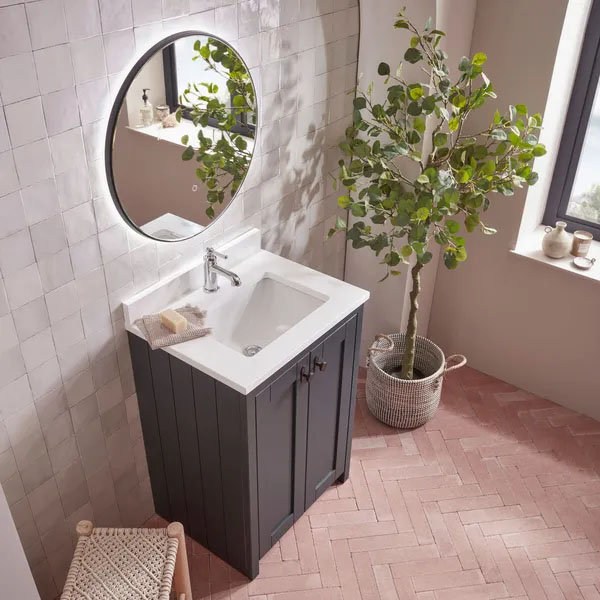 - Carisbrook vaskemøbel fås i 5 farver og to størrelser med valgfri bordpladefinish.
