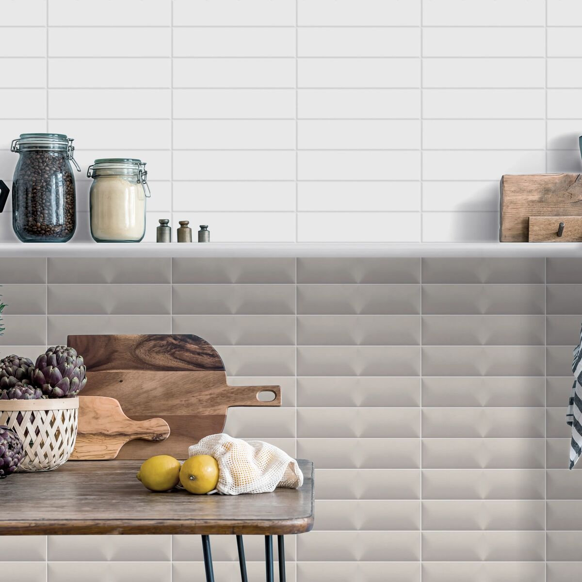 Disse enkle og underspillede keramiske fliser har en mat overflade og fås i fire afdæmpede farver samt tre unikke teksturer. Slip fantasien løs og kombiner farver og strukturer, præcis som du ønsker.