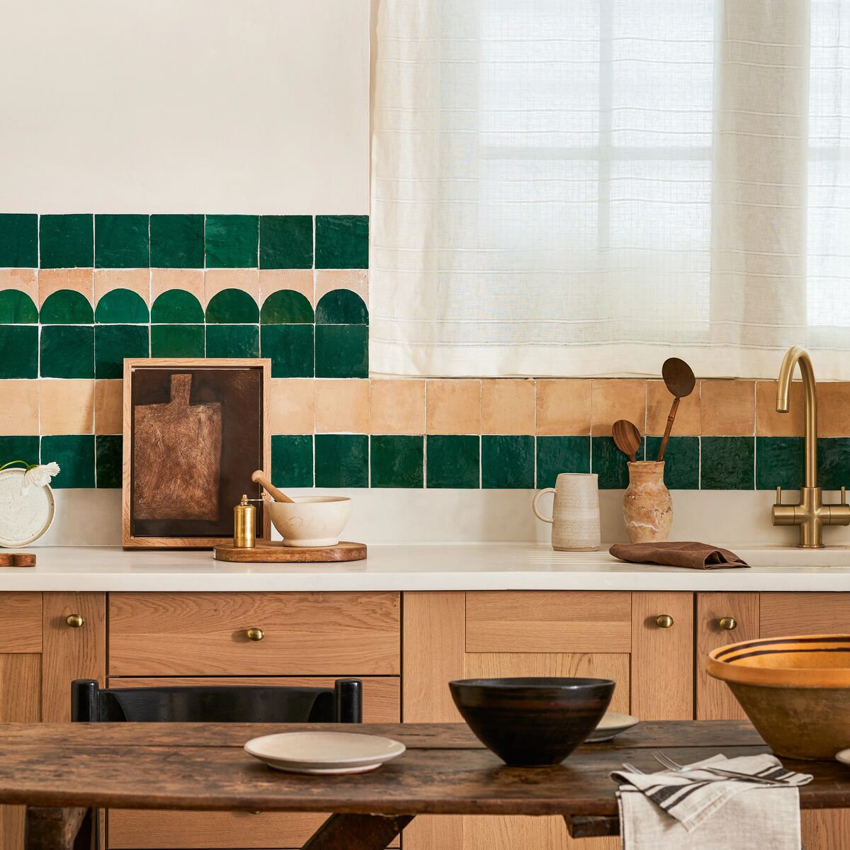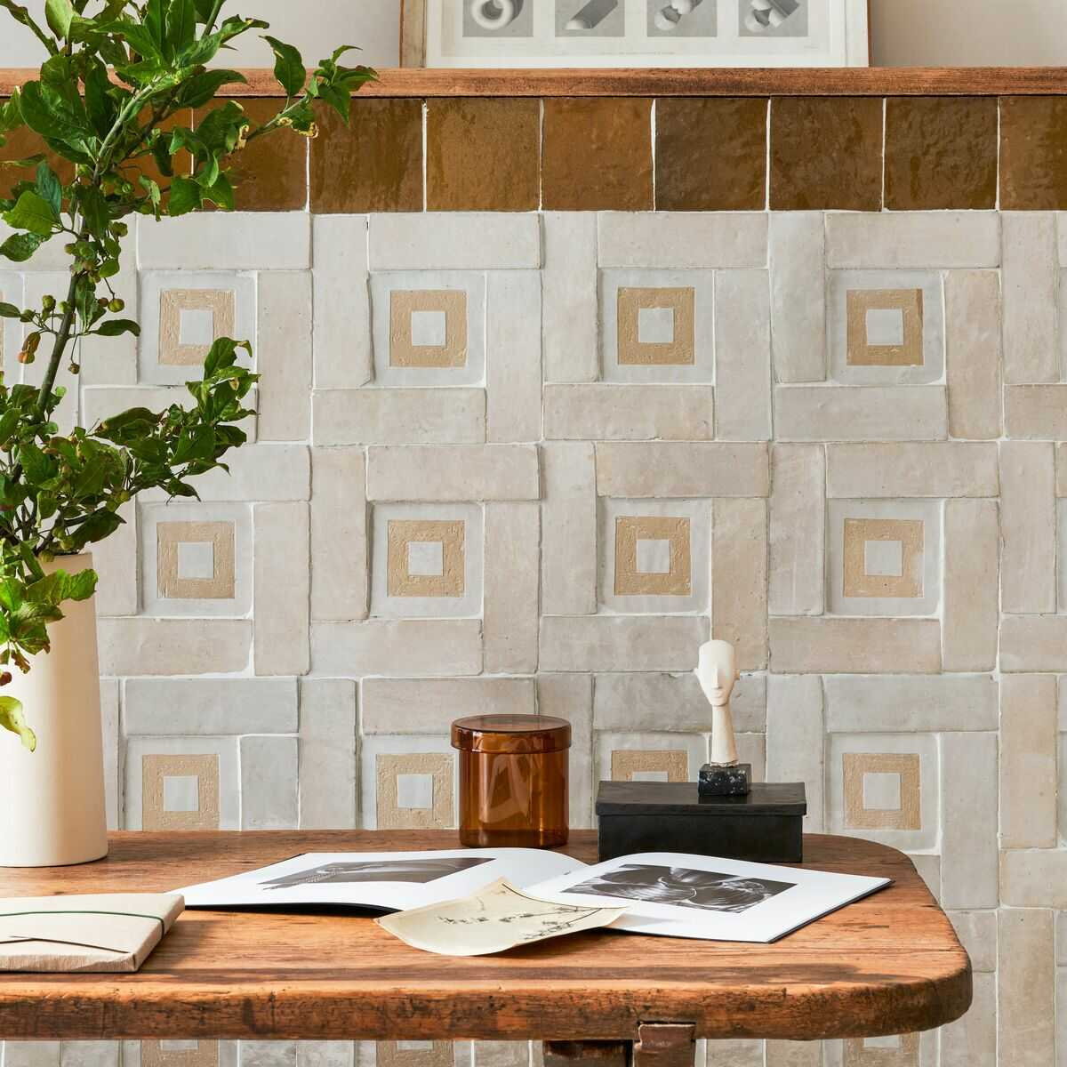 Fliserne skal altid blandes før montering – monter aldrig Zellige-fliser direkte fra kassen. Vi anbefaler, at du pakker alle fliserne ud og lægger dem ud først for at sikre en jævn fordeling af farver og naturlige ufuldkommenheder.
