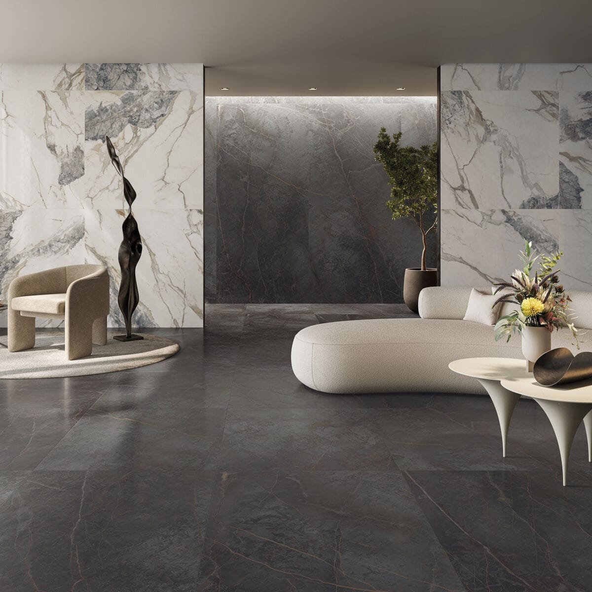 En fantastisk porcelænsflise, der gengiver blå marmor med sine markante årer og dybde. Skab en eksklusiv atmosfære med det luksuriøse look af naturmarmor uden at gå på kompromis med holdbarhed og nem vedligeholdelse. Denne porcelænsflise fanger de dybe blå nuancer og variationer fra ægte marmor med imponerende realisme og et iøjnefaldende finish.