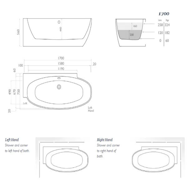 Lækkert og stilrent hjørne badekar. Vælg mellem højre eller venstre hjørne.