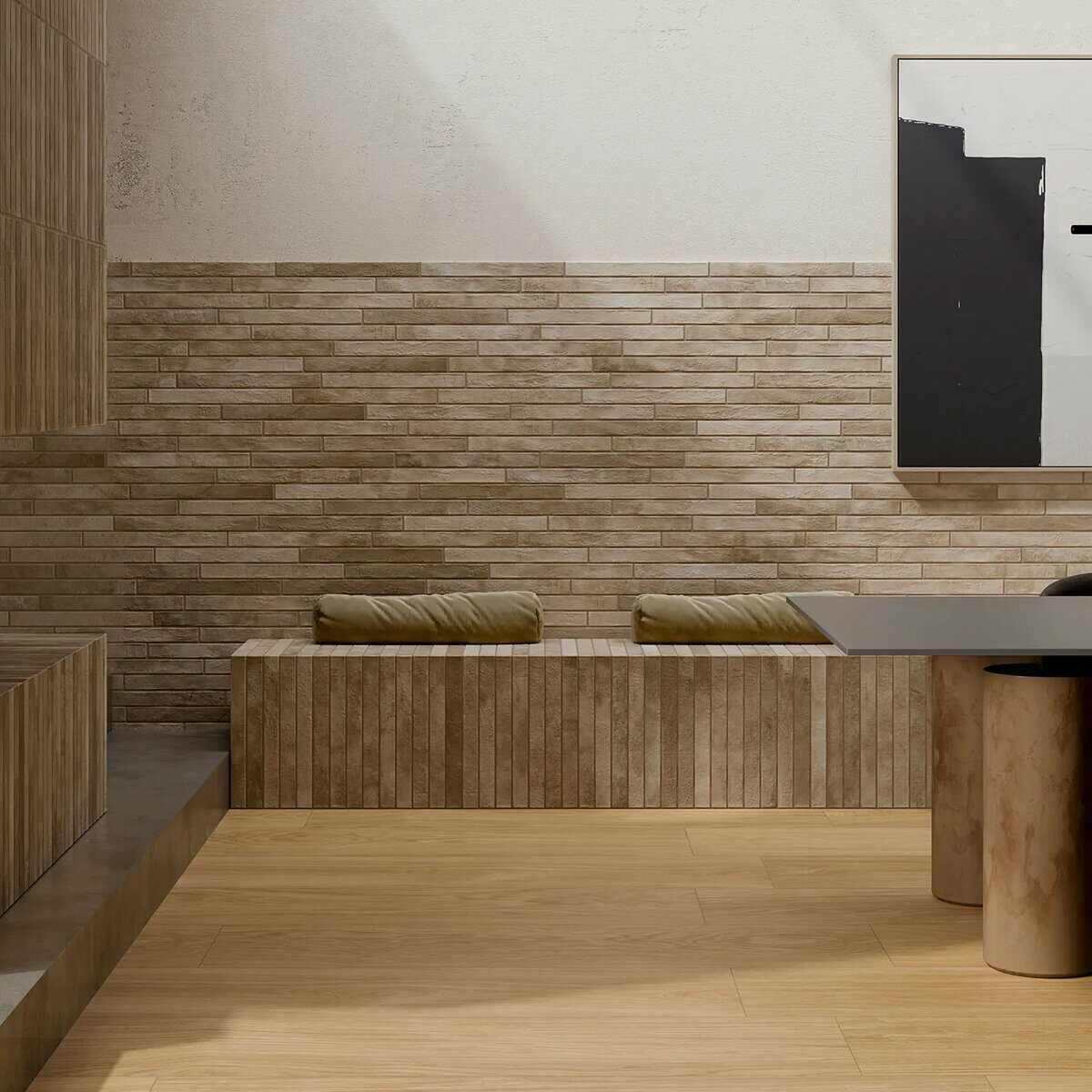 Disse smukke fliser med terracotta-look har samme charme og variation som genanvendte terracottaklinker, men er fremstillet i let vedligeholdeligt porcelæn og kan også bruges udendørs. Fliserne har en naturlig farvevariation, der skaber dybde i designet, når de lægges.