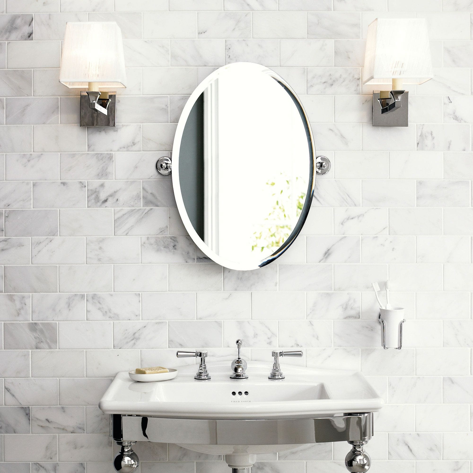Klassisk stort ovalt facetspejl uden ramme med vippefunktion